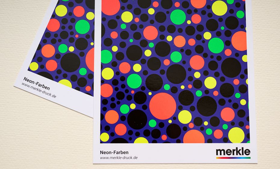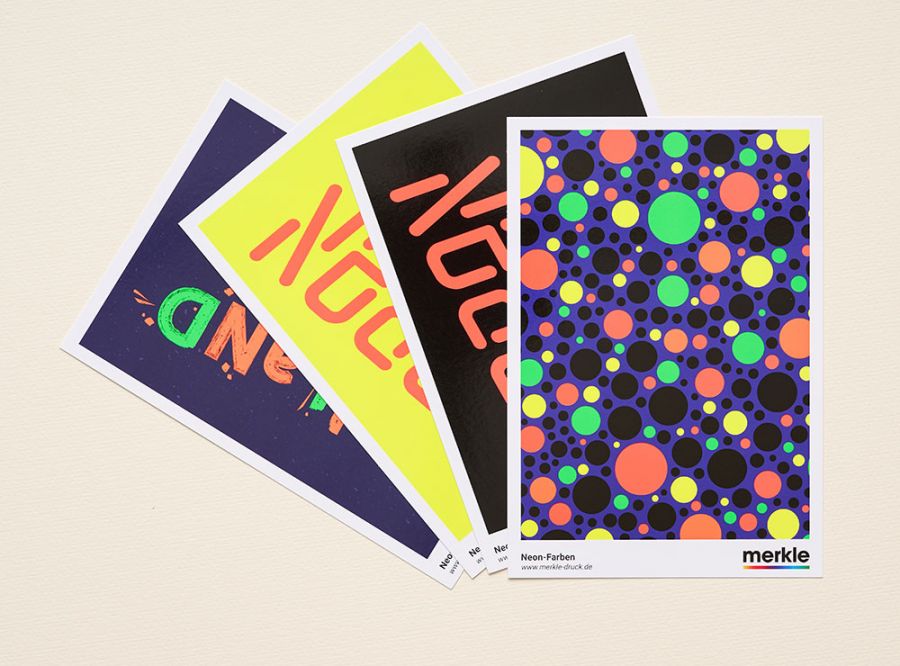 Spektakulär wird es mit neonfarbenen Effekten, die durch eine doppelte Aufbringung noch intensiver wirken. Damit werden Ihre Druckprodukte zum strahlenden Blickfang! Nutzen Sie diese Veredelungstechniken, um einzigartige Akzente zu setzen und Ihre Botschaft in Szene zu setzen.
