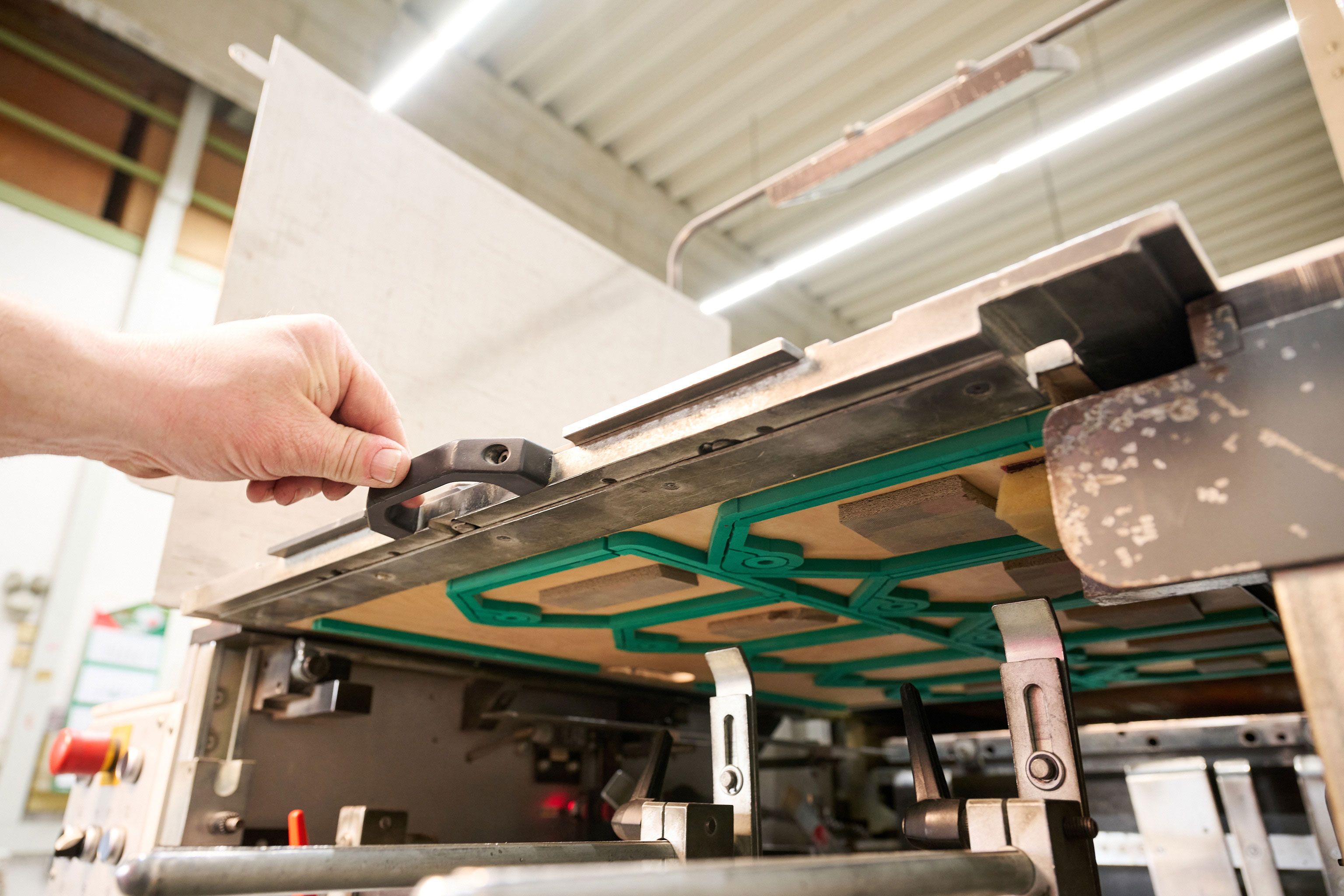 Beim Stanzverfahren wird je Projekt eine individuelle Stanzform gefertigt, um Papier oder Karton in die gewünschte Form zu schneiden. Die Stanzform besteht aus scharfen Klingen, die präzise auf einer festen Platte befestigt sind. Das Material wird unter hohem Druck auf diese Form gepresst, wodurch die gewünschte Form sauber herausgetrennt wird. Dadurch entstehen exakte Ergebnisse, die jedem Druckprodukt eine individuelle und ansprechende Optik verleihen.